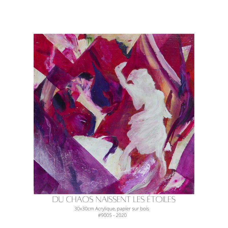 Je commence par des formes, des couleurs, et j’écoute ce que la peinture et mes gestes me suggèrent. C’est comme une conversation avec la matière. Petit à petit, un sujet émerge de cette interaction. Je ne le force pas, je l’accompagne. C’est un état de flow où la main semble savoir des choses que la tête ignore. »